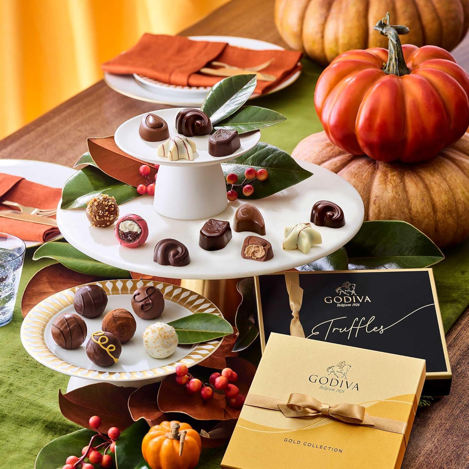 GOURMET CHOCOLATE: This 12-piece Godiva chocolate gift box features an exciting assortment of gourmet milk, white, and dark chocolate truffles crafted with classic Belgian fillings