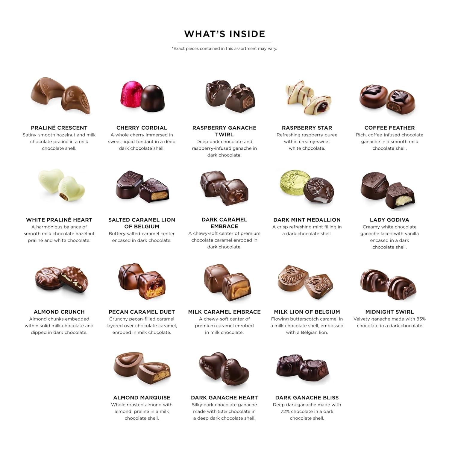 ENCHANTING VARIETY – Indulge in a symphony of exquisite flavors from Godiva's gourmet chocolate gift box, a sweet Father’s Day surprise or part of a Spring gift basket. Relish in the harmonious blend of creamy pralinés, tangy fruits, and luscious caramels, handpicked to tantalize your taste buds. Each silky piece echoes an unmatched world of richness, making it a perfect gift for holidays, birthdays, thank you, congratulations or other celebrations.