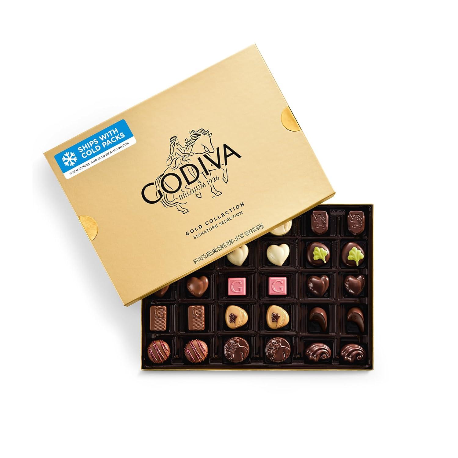 Godiva Gold Milk Chocolate Gift Box, Belgian Milk Chocolates with Pralinés, Ganaches & Caramels, Gourmet Gift for Birthdays, Holidays, Non-GMO & Kosher, 15 Pc(Assorted)