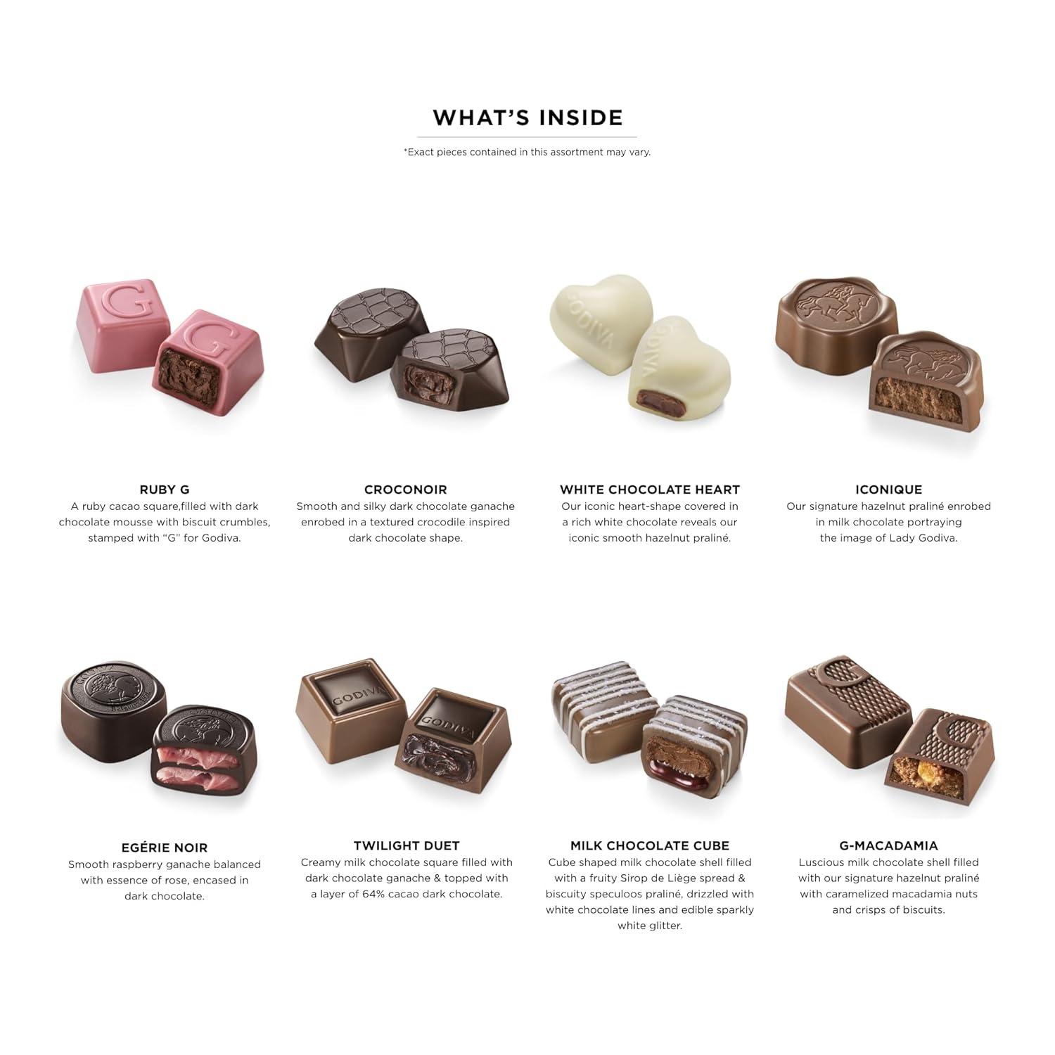 Experience a bold evolution of chocolate indulgence with the Godiva Masterpiece Dark Chocolate Candy Bag. This elevated collection is inspired by our iconic chocolate heritage and reimagined for those who savor refined flavor and artistic presentation. Each individually wrapped piece is crafted with rich, cocoa-intense dark chocolate and filled with silky ganache, a perfect harmony of crisp shell and smooth, slow-melting center that creates a lingering, unforgettable finish. Every Masterpiece is sculpted with premium artistry and brandishes our signature Lady Godiva crest,using premium ingredients around the world by our chef chocolatiers. Designed to satisfy both chocolate connoisseurs and everyday treat seekers, this luxurious 7.0oz bag contains approximately 22 exquisite pieces of gourmet chocolate, all certified Kosher and Halal, these delicious morsels are ready to be shared, gifted, or enjoyed as a moment of everyday luxury. Perfect for sharing or savoring, the elegant black and purple bag features gold foil accents and modern design detailing, reflecting the sophistication within. Whether enjoyed as a personal indulgence or gifted to loved ones, spouses, coworkers, or friends, this dark chocolate ganache collection makes an unforgettable impression. Its compact yet generous format also makes it an ideal addition to premium gift baskets, dessert spreads, or corporate gifting moments. Crafted in the tradition of Belgian chocolate-making since 1926, Godiva Masterpieces are a tribute to our commitment to the finest ingredients and timeless techniques. Discover a deeper, richer chocolate experience where the taste, texture, and design converge in every bite. Elevate any day with this decadent collection and let the artistry of Godiva turn the ordinary into a masterpiece.