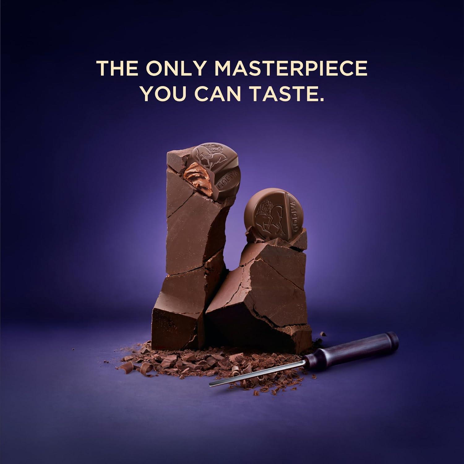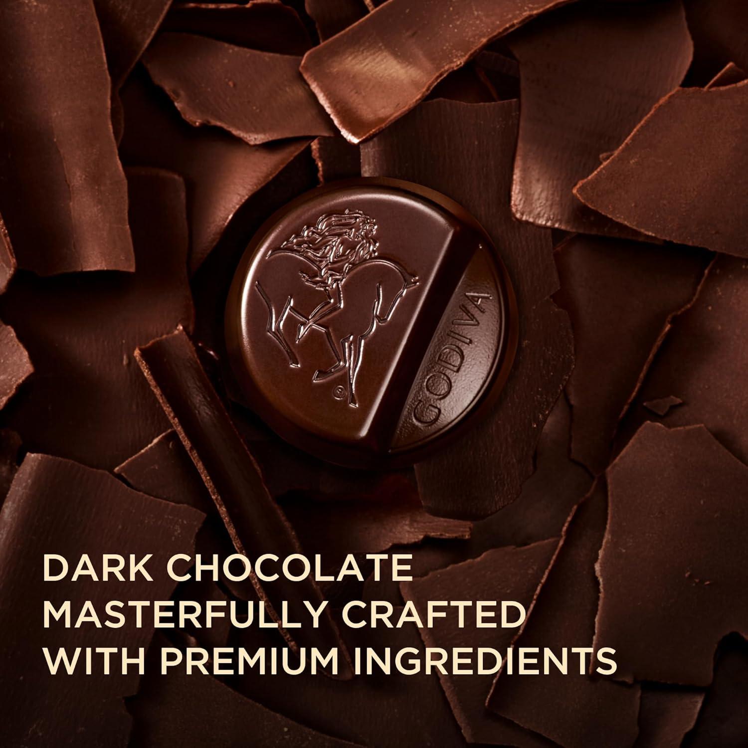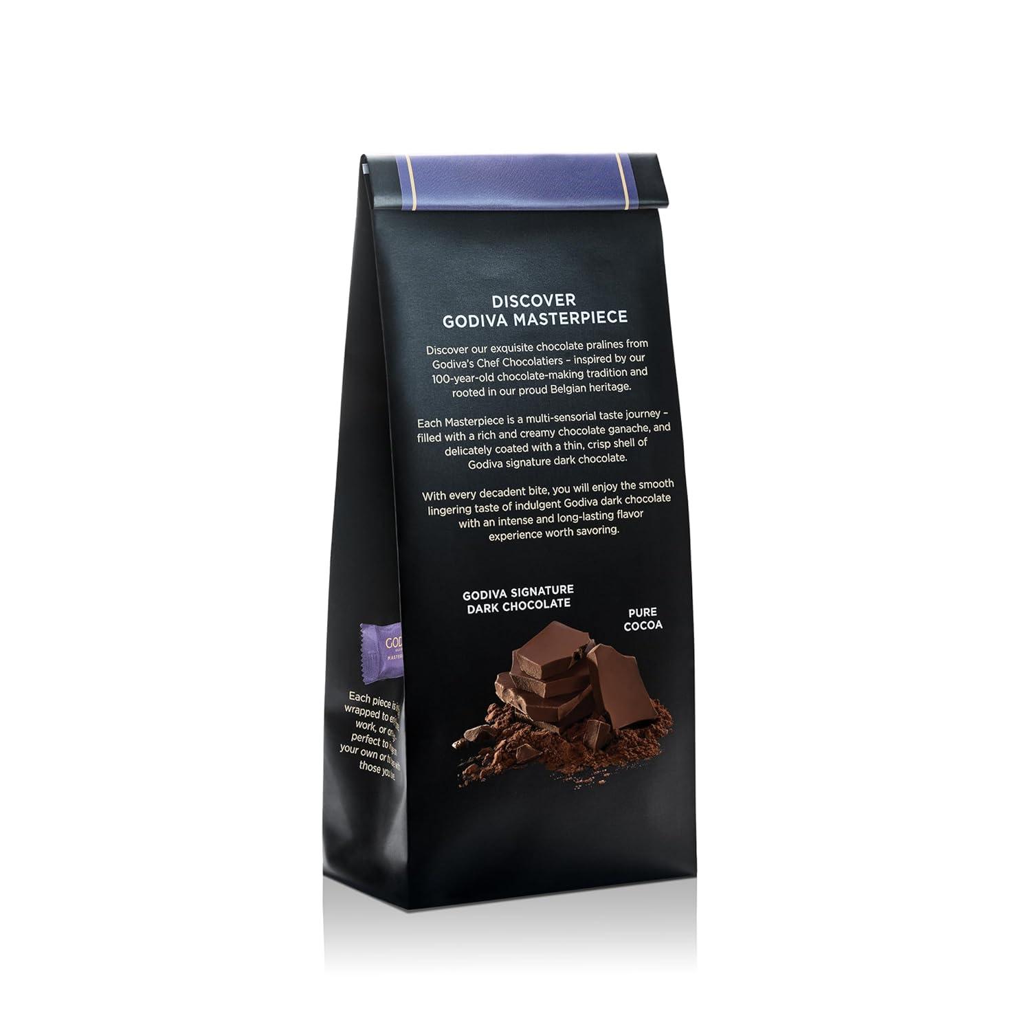 Experience a bold evolution of chocolate indulgence with the Godiva Masterpiece Dark Chocolate Candy Bag. This elevated collection is inspired by our iconic chocolate heritage and reimagined for those who savor refined flavor and artistic presentation. Each individually wrapped piece is crafted with rich, cocoa-intense dark chocolate and filled with silky ganache, a perfect harmony of crisp shell and smooth, slow-melting center that creates a lingering, unforgettable finish. Every Masterpiece is sculpted with premium artistry and brandishes our signature Lady Godiva crest,using premium ingredients around the world by our chef chocolatiers. Designed to satisfy both chocolate connoisseurs and everyday treat seekers, this luxurious 7.0oz bag contains approximately 22 exquisite pieces of gourmet chocolate, all certified Kosher and Halal, these delicious morsels are ready to be shared, gifted, or enjoyed as a moment of everyday luxury. Perfect for sharing or savoring, the elegant black and purple bag features gold foil accents and modern design detailing, reflecting the sophistication within. Whether enjoyed as a personal indulgence or gifted to loved ones, spouses, coworkers, or friends, this dark chocolate ganache collection makes an unforgettable impression. Its compact yet generous format also makes it an ideal addition to premium gift baskets, dessert spreads, or corporate gifting moments. Crafted in the tradition of Belgian chocolate-making since 1926, Godiva Masterpieces are a tribute to our commitment to the finest ingredients and timeless techniques. Discover a deeper, richer chocolate experience where the taste, texture, and design converge in every bite. Elevate any day with this decadent collection and let the artistry of Godiva turn the ordinary into a masterpiece.