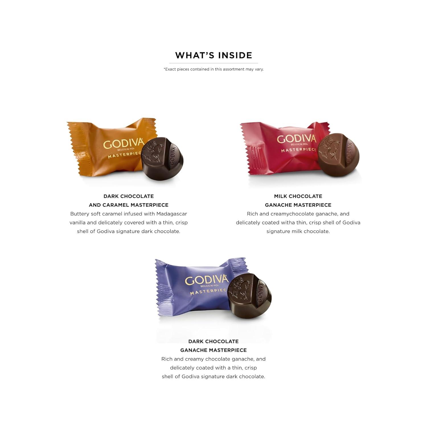 Godiva Red Bow Gold Assorted Chocolate Gift Box, Belgian Dark and Milk Chocolates with Pralinés, Ganaches & Caramels, Gourmet Holiday Gift, Non-GMO & Kosher, 60 Pc(Holiday Tin)